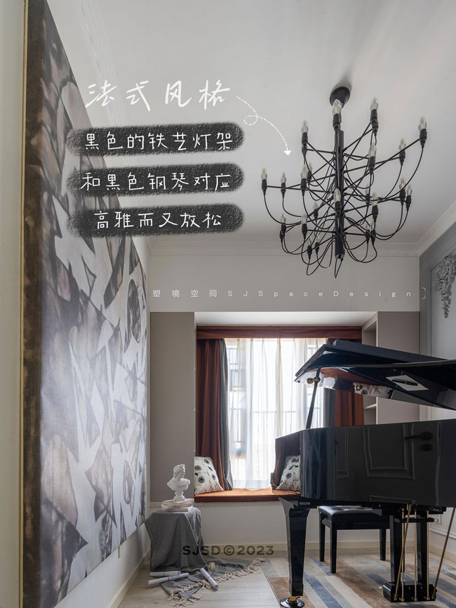 現(xiàn)代的法式吊燈常常具有數(shù)十支蠟燭的燈座,讓整個空間充滿了溫柔氣息。對于一個更加古雅和寧靜的氛圍,你可以選擇一個設(shè)計簡潔而精致的鑄鐵吊燈。