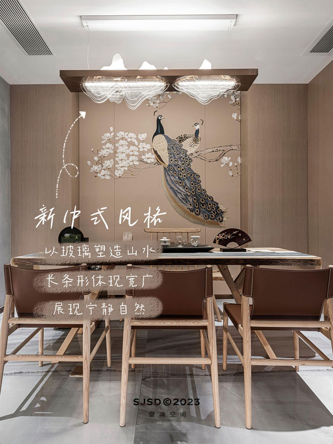 新中式風(fēng)格比較注重自然和歷史文化的傳承,所以吊燈的設(shè)計也會強(qiáng)調(diào)一些民族特點。通常采用紅色配以金色,或者拼花玻璃等流行的元素進(jìn)行裝飾。