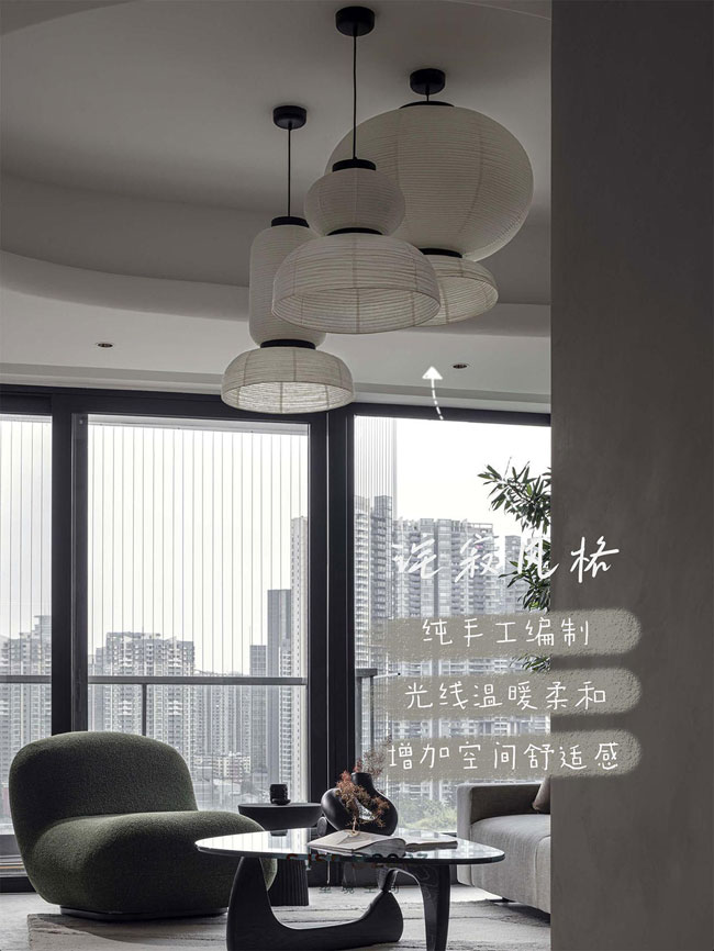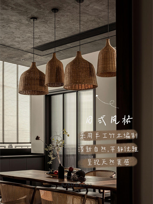 日式吊燈充滿了清新、自然的特色,利用手工編織的木制和竹子的結(jié)構(gòu),呈現(xiàn)出一種天然的美感和氣息。適合放置在客廳或書房等開敞空間中,營造一個平靜而優(yōu)雅的氣氛。